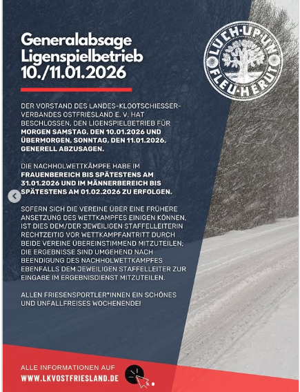 - Gerneralabsage Boßelspielbetrieb wegen Wintereinbruch 23. Januar 2026